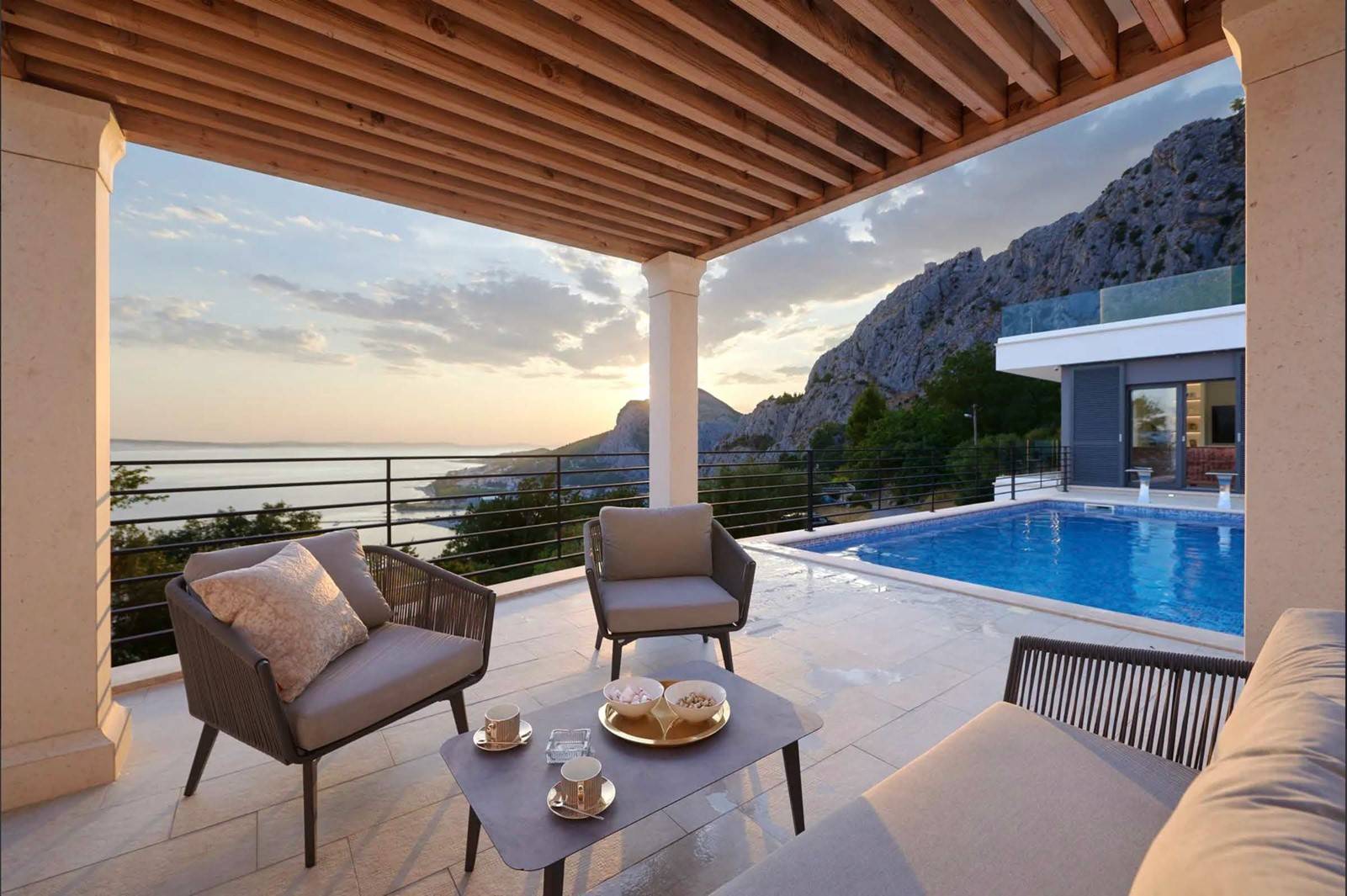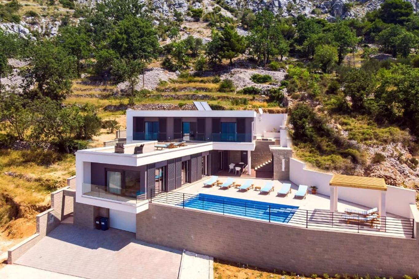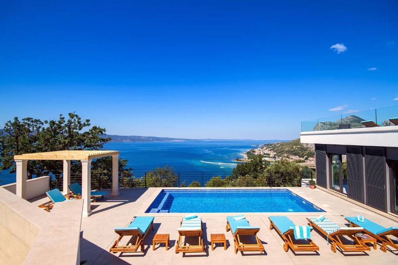 Ontdek de luxe en ruimte van deze prachtige villa met verwarmd zwembad en twee terrassen, waaronder een dakterras met adembenemend uitzicht op zee. Met slaapgelegenheid voor maximaal 10 personen en 4 slaapkamers met elk een eigen badkamer. Geniet van de gym met badkamer en infrarood sauna, de ruime woonkamer met open keuken en het overdekte benedenterras met vaste barbecue. Gelegen in het stadje Omis in Kroatië, op slechts een steenworp afstand van de zee en op loopafstand van het centrum. voorzieningen zoals WiFi, tv, oven, magnetron en meer maken uw verblijf compleet.
